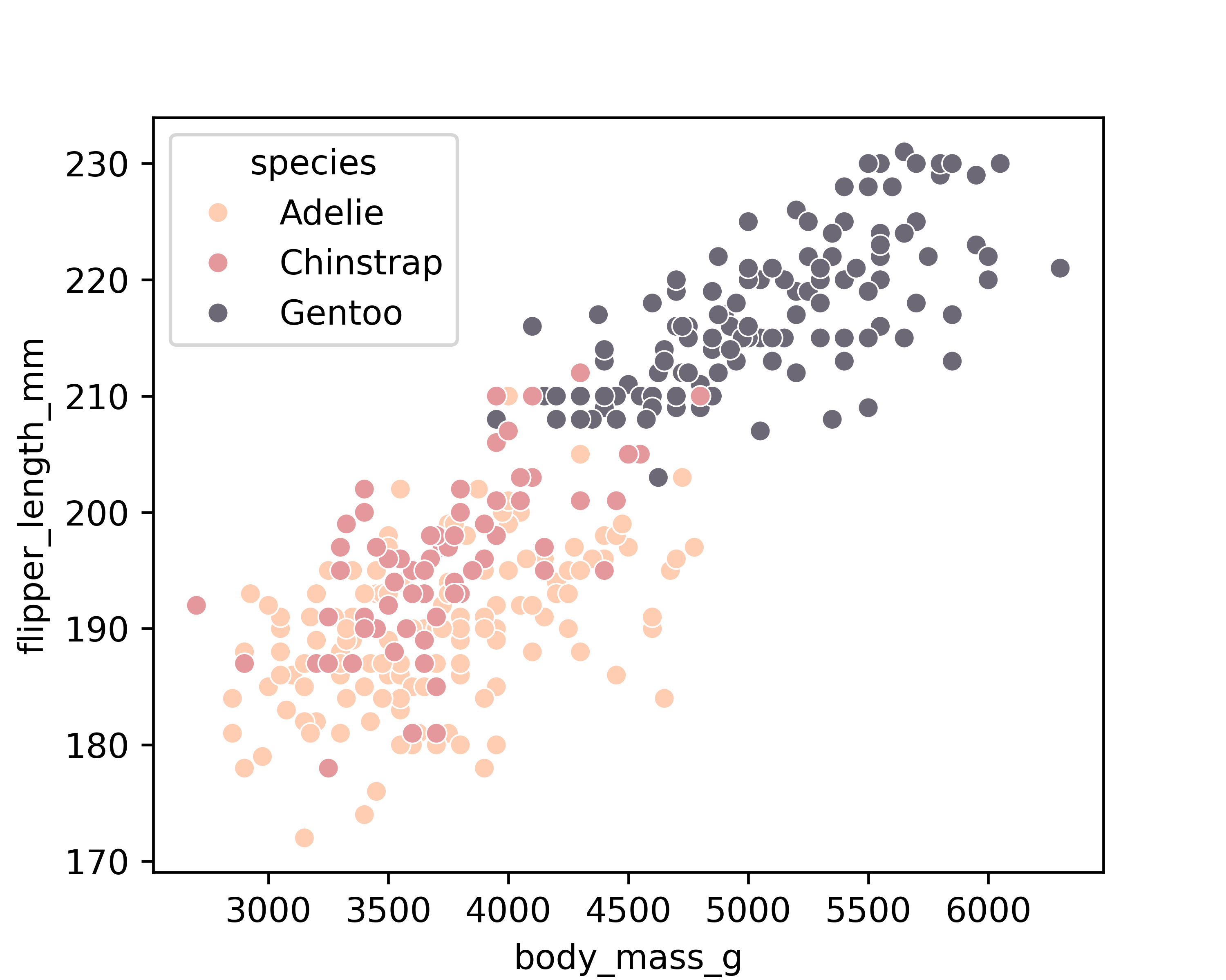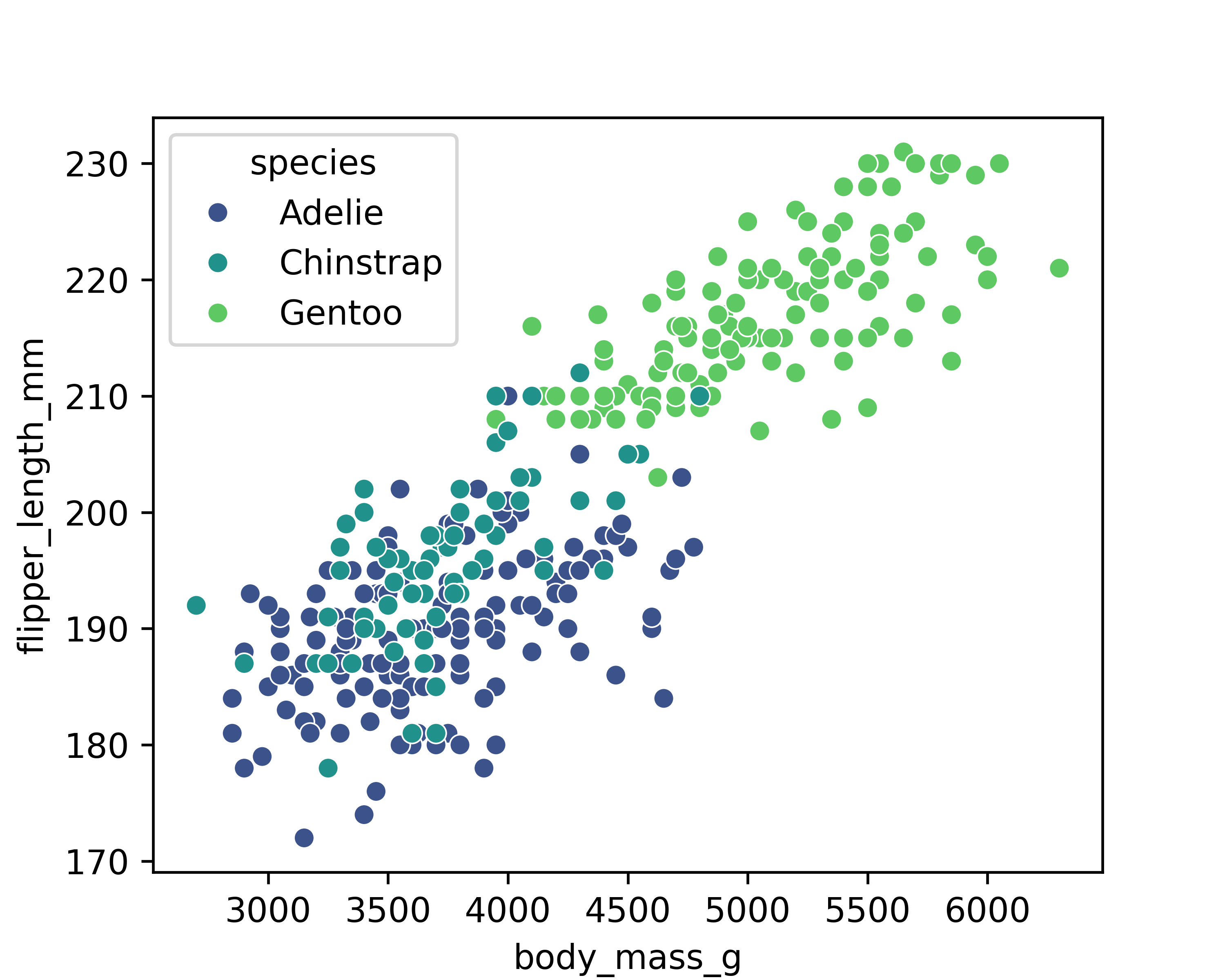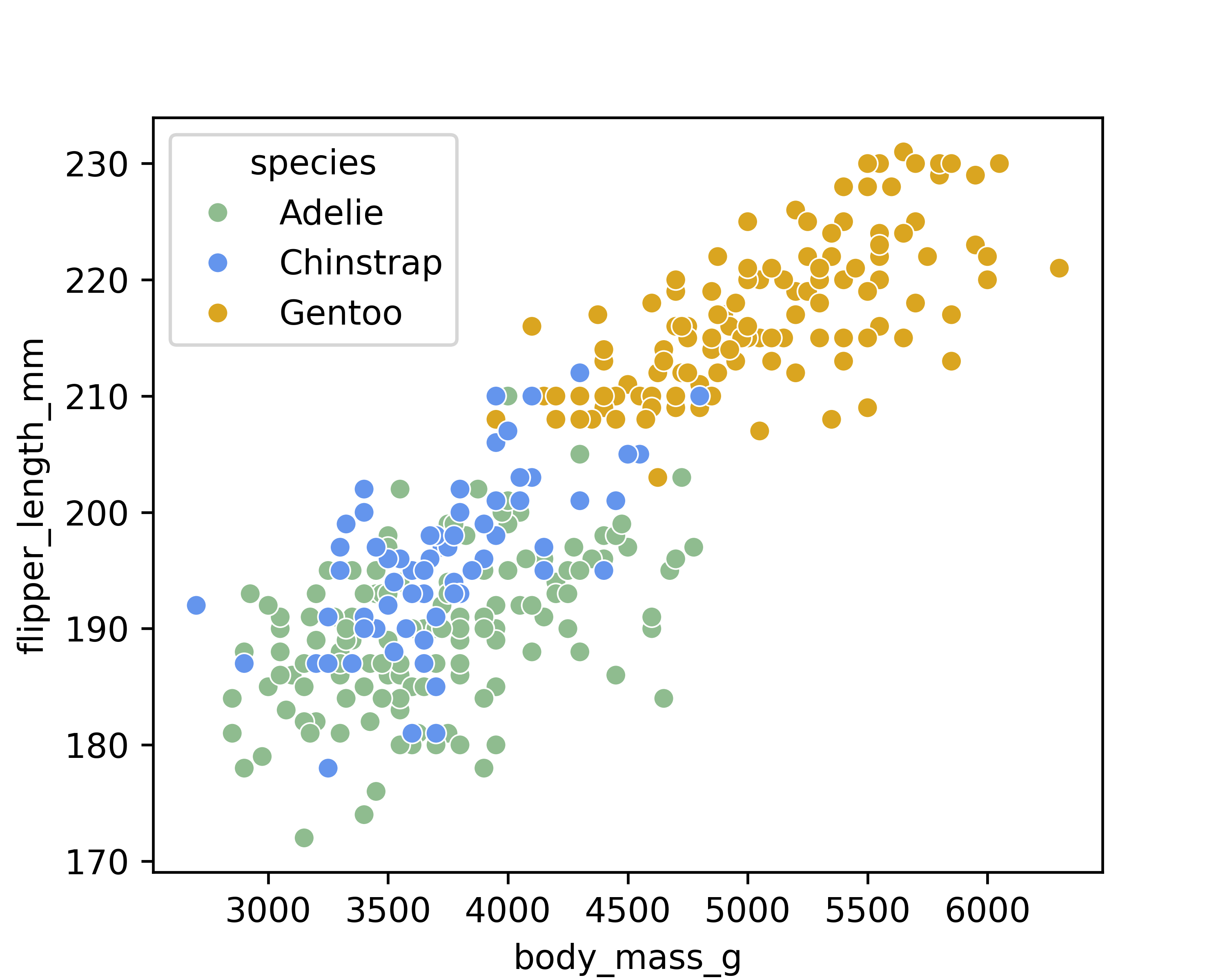 Hier noch eine abschließende Bemerkung: Wir haben nur im allerersten Abschnitt die Farben als Dictionary übergeben. In allen anderen Fällen haben wir die Farben als Liste übergeben. Wie man sieht reicht es aus, Farben als Liste zu übergeben, allerdings ist dann unter Umständen nicht gewährleistet, dass die Farben auch wirklich den “richtigen” Kategorien zugeordnet werden. So kann es passieren, dass in einem Plot die Art “Adelie” plötzlich die Farbe von “Gentoo” hat. Mithilfe der Legende wären beide Plots natürlich weiterhin korrekt interpretierbar, aber intuitiver wäre es, wenn dieselbe Art über alle Plots hinweg dieselbe Farbe hat. Deshalb ist es ratsam, möglichst noch vor Erzeugung des ersten Plots die genauen Farben je Kategorie als Dictionary zu definieren und dieses dann im gesamten Projekt immer wieder zu verwenden.